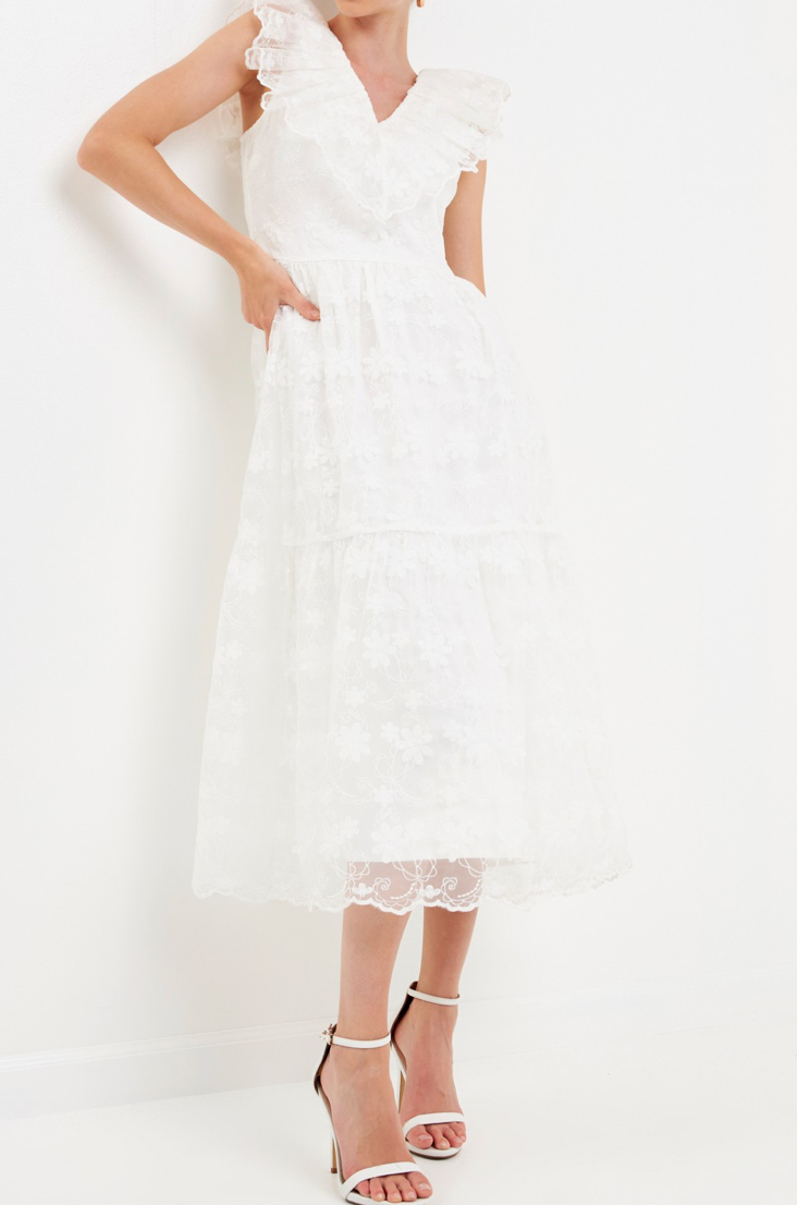 Floral Embroidery Organza Midi Dress